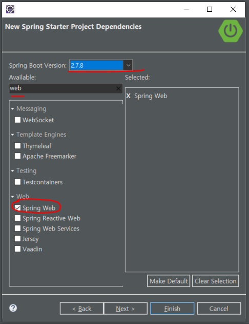 - 간단한 테트를 위한 프로젝트 이므로 Spring Web 정보만 추가를 해준다.